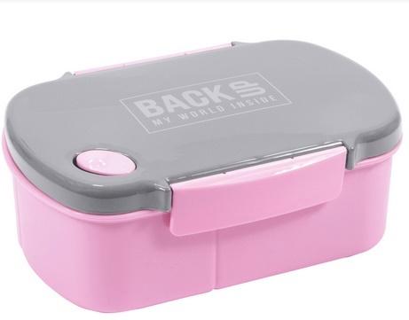 Śniadaniówka w pastelowym, różowym kolorze to zdecydowanie strzał w dziesiątkę! Odcienie pastelowe to hit sezonu! Szara pokrywka z logo BackUP tworzy z delikatnym różem idealną całość.