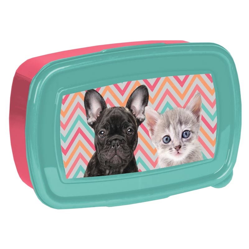 Kolorowe pudełko śniadaniowe. Produkt posiada certyfikat jakości- jest nietoksyczny i bezpieczny dla dzieci (pozytywna opinia wydana przez firmę SGS i TUVRheinland)