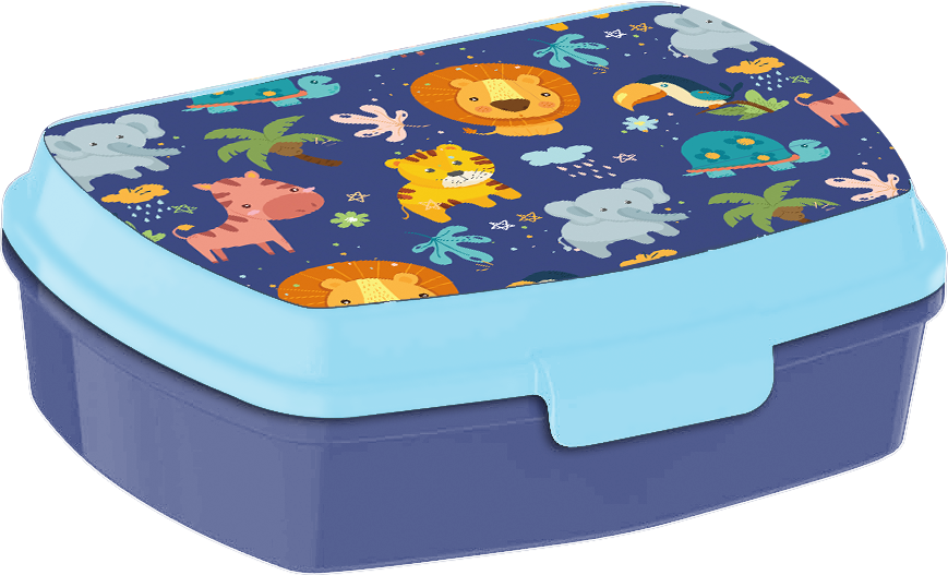 Śniadaniówka z motywem Jungle to funkcjonalny pojemnik do przechowywania żywności jaką dajemy dziecku do szkoły, przedszkola lub na rodzinną wycieczkę.