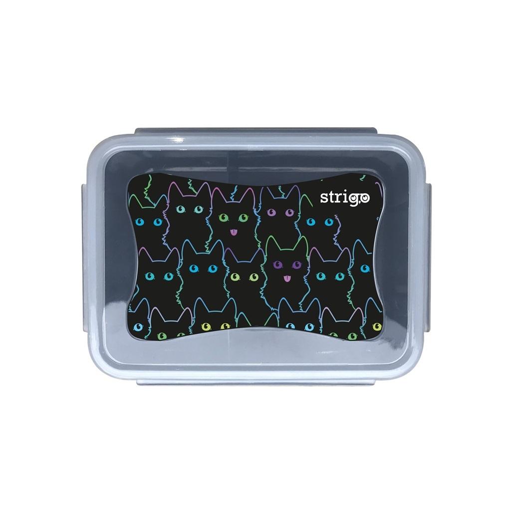 Śniadaniówka Strigo z kolekcji Koty z 2 przegródkami dzielącymi ją na dwie komory. Estetyczny wygląd sprawi, że Twoje dziecko chętnie zabierze go ze sobą do szkoły oraz na wycieczkę. Wykonany z tworzywa plastikowego, zamykany na zatrzaski, posiadający silikonowe zabezpieczenia na brzegach.