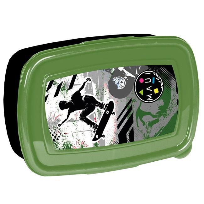 Śniadaniówka Maui and Sons Skater to praktyczny pojemnik śniadaniowy idelny do szkoły ale również podczas rodzinnych spacerów i wycieczek. Pojemność 750 ml. Konstrukcja pudełka śniadaniowego Paso jest niezwykle szczelnym systemem. Lekka, plastikowa śniadaniówka spełnia wszelkie wymogi jakościowe. Śniadaniówka posiada certyfikat jakości, jest nietoksyczna i bezpieczna dla dzieci. BPA FREE. Produkt można myć w zmywarce. Rozmiar: 18,5x13x6