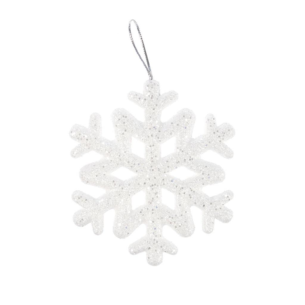 Zestaw białych śnieżynek z brokatem. Wielkość 9,5 cm. 7 sztuk w opakowaniu.