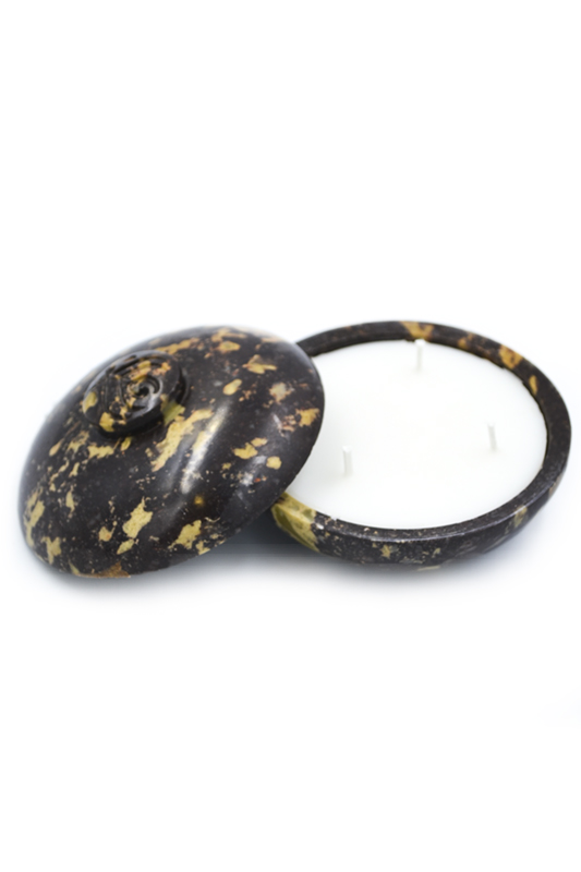 Do czystego wosku dodano naturalne olejki zapachowe dzięki czemu uzyskano pięknie pachnącą świecę zamkniętą w kamiennej szkatułce.
