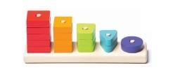 Ten wspaniały drewniany sorter pomoże Twojemu dziecku nie tylko dobrze się bawić, ale także rozwijać zdolności poznawcze. Zestaw to prostokątny sorter, który zawiera 5 kolumn w różnych kolorach. Kolumny powinny być obramowane w zależności od ich koloru i kształtu. Zawiera 16 części: podstawę z kołkami i 15 elementów o różnych kształtach.