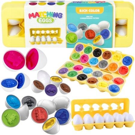 Jajka w wytłoczce to niezwykła gra edukacyjna, która zachwyca swoją kreatywnością i interaktywnością. Ten zestaw 12 jajek w 6 różnych kolorach oferuje nie tylko mnóstwo zabawy, ale również pełen wachlarz możliwości rozwoju umiejętności poznawczych i motorycznych u dzieci. Dzięki wbudowanym różnorodnym kształtom aut, łódek i samolotów, dzieci mogą eksperymentować z różnorodnymi stemplami, ucząc się jednocześnie rozpoznawania i łączenia kształtów. Każde jajko to także połówka, którą można dopasowywać i łączyć, rozwijając zdolności logicznego myślenia i umiejętności dopasowywania. Dodatkowo, 6 kolorów jajek umożliwia dzieciom naukę i rozpoznawanie kolorów, a także stymuluje ich zmysł estetyczny. Zabawka wykonana jest z łatwych do utrzymania w czystości, bezpiecznych i trwałych materiałów, przeznaczonych dla dzieci już od 1 roku życia. Jajka w wytłoczce to nie tylko gra, ale również wspaniała zabawka edukacyjna, która angażuje dzieci w twórczą i interaktywną naukę przez zabawę.