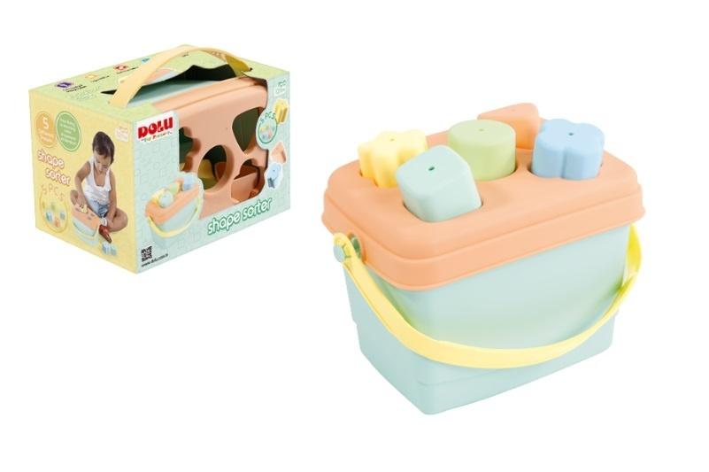 W zestawie znajdują się plastikowe klocki o różnych kształtach, które maluch dopasowuje do odpowiednich otworów w pokrywce. Zabawa w sortowanie rozwija koordynację wzrokowo-ruchową, zdolności manualne i rozpoznawanie kształtów oraz kolorów. Po zakończonej zabawie wszystkie elementy można przechować w zamykanym wiaderku z wygodnym uchwytem do przenoszenia.