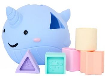 Zawartość zestawu: Pięć klocków + sorter w kształcie narwala