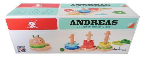 Drewniane sortery - piramidki - trzy słupki z wypustkami i zestaw dopasowanych do nich kolorowych klocków. Dla dzieci w wieku od 12 miesięcy.