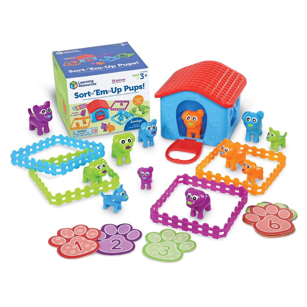 Sorter Pieski to niezwykle ciekawy zestaw, składający  się z niebieskiej budy, wielu kolorowych figurek piesków, płotków i  odcisków łap. Jest idealny do sortowania, rozpoznawania kolorów,  rozpoznawania liczb, umiejętności obserwacyjnych i rozwijania  umiejętności motorycznych. Żadne dwa pieski nie są takie same. Różnią  się wielkością, kształtem uszu, cętkami na grzbiecie, kolorem odcisku  łapy itd. Figurki są przyjazne i urocze! Idealnie dopasowane do małych  rączek. Pieski można pogrupować umieszczając je w odpowiedniej zagrodzie lub przechowywać w domku z odkrywanym daszkiem i drzwiami.
