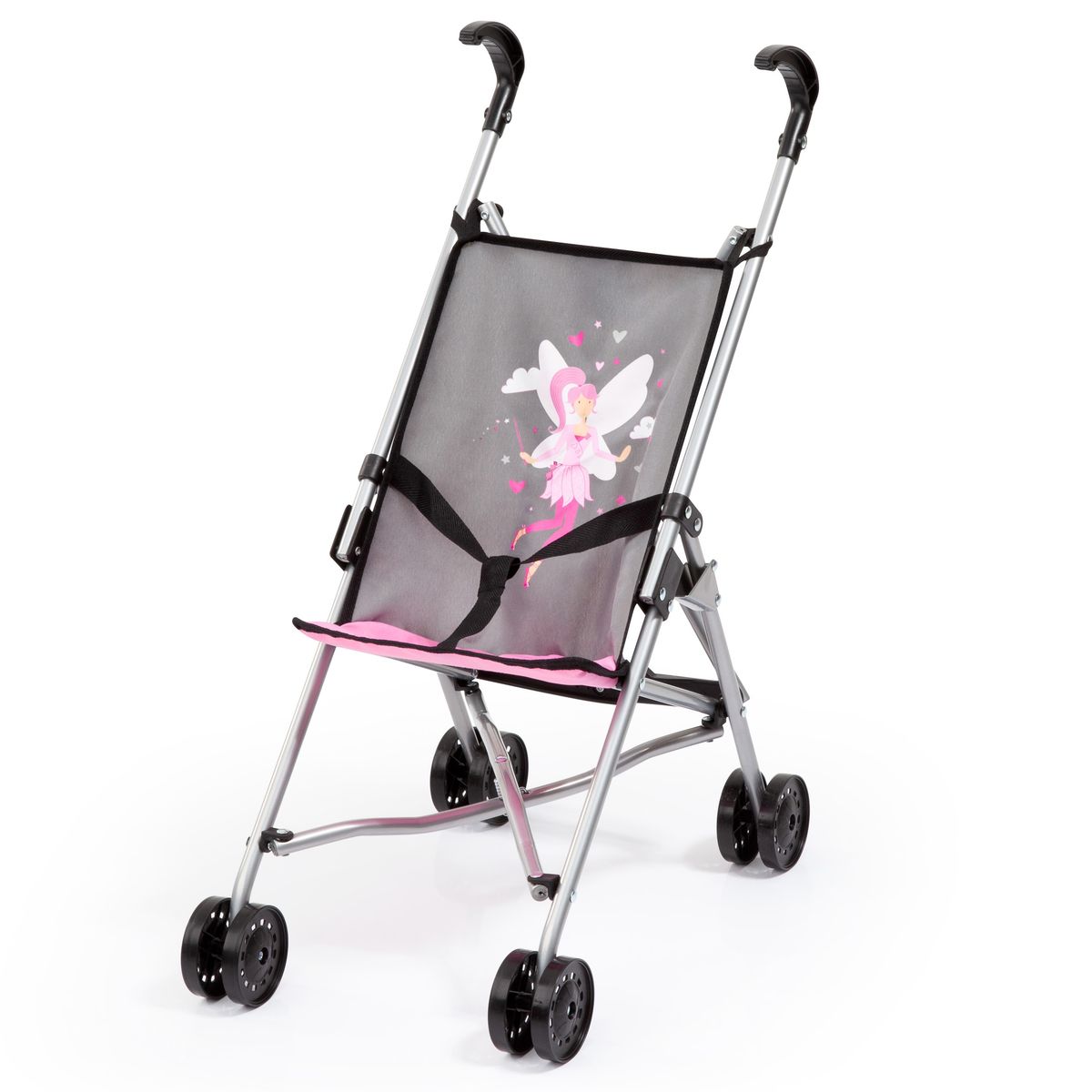 Ten miły i solidny wózek dla lalek jest w sam raz dla wszystkich małych mam. Piękny design oznacza zawsze dobry nastrój podczas zabawy. Dzięki zintegrowanemu paskowi lalka czy pluszowe zabawki mogą być bezpiecznie umieszczone w siedzeniu. Dzięki podwójnym kołom można go łatwo złożyć i przenosić. Wózek jest odpowiedni dla lalek o długości do 46 cm. Wysokość uchwytu: 55 cm. Wymiary: 51 x 27 x 55 cm.