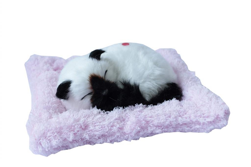 Uroczy biało czarny, śpiący kotek na poduszce będzie znakomitym prezentem dla najmłodszych jak i wszystkich wielbicieli domowych pupili.