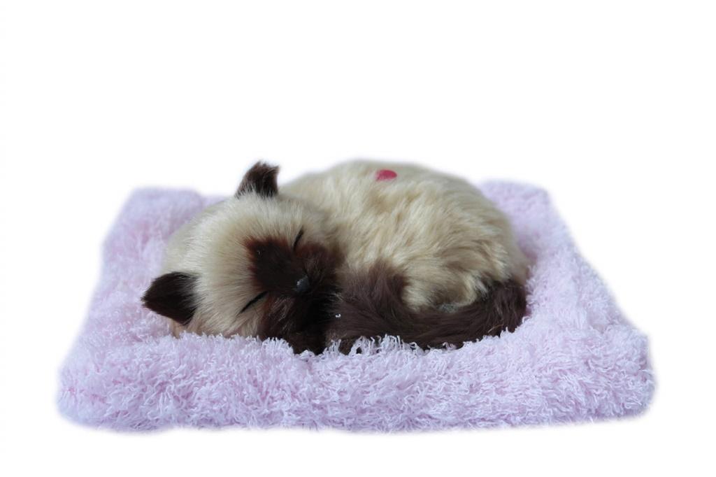 Uroczy brązowy, śpiący kotek na poduszce będzie znakomitym prezentem dla najmłodszych jak i wszystkich wielbicieli domowych pupili.