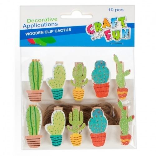Drewniane Klamerki Craft Wit Fun idealnie nadają się do przyczepiania zdjęć, obrazków oraz wszelkiego rodzaju kartek. Doskonałe do wykonywania dekoracji metodą scrapbooking oraz rękodzieł. Klamerki można dowolnie ozdabiać oraz malować. Używaj tego produktu w połączeniu z innymi akcesoriami oraz kompletami z serii Craft With Fun! W opakowaniu znajduję się 10 spinaczy z Kaktusami. Do spinaczy dołączony jest również sznurek, dzięki czemu można od razu na mim zawiesić różne fotografię. Produkt wykonany z drewna. Przeznaczony dla dzieci w wieku: 3+. Pakowany w folię z zawieszką. Wymiary opakowania(szer. x wys.) [cm] 13x17.