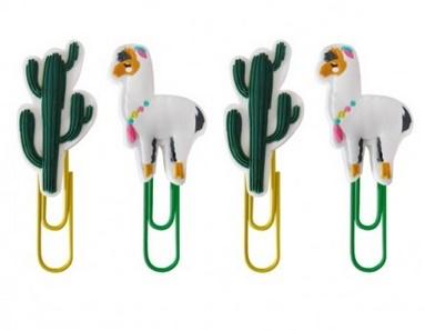 Zestaw klipsów do papieru w kształcie kaktusów i lamy. Klipsy sprawią, że praca stanie się przyjemnością. Stylowy i oryginalny element wyposażenia biura.