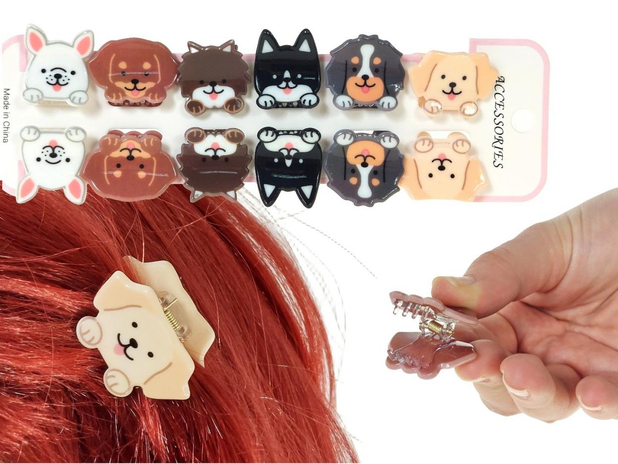 spinki do włosów - pieski, ok 2cm; 19x6cm; opak.12szt