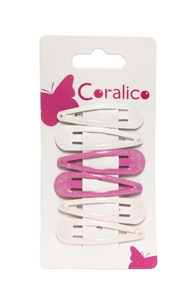 Zestaw spinek z brokatem 6 szt: białe, jasny róż, ciemny róż