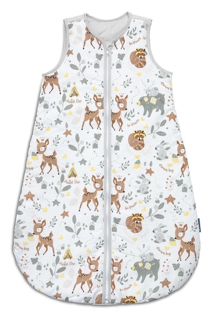 Śpiworek do spania w rozmiarze M będzie służył nieco starszym dzieciom (9-18 miesięcy) zapewniając im ciepło i bezpieczeństwo. Wykonany jest z miękkiej bawełny wypełnionej otuliną. Nie zawiera twardych elementów, które mogłyby podrażnić skórę dziecka. Śpiworek wyposażony jest w dwustronny zamek błyskawiczny, zabezpieczony przy szyi, pozwalający na zmianę pieluchy bez wyciągania dziecka ze śpiworka. Pasuje do innych produktów naszej marki.