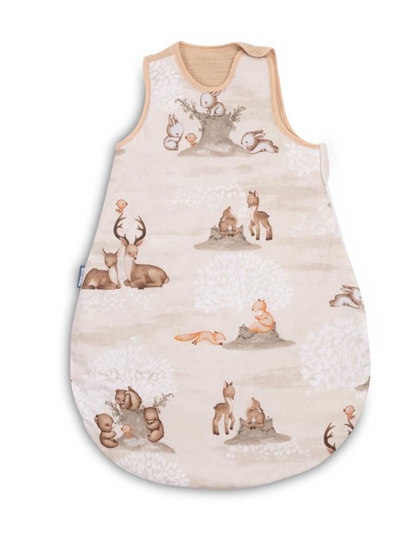 piworek do spania będzie służył dzieciom już od pierwszych dni życia (0-9 miesięcy) zapewniając im ciepło i bezpieczeństwo. Uszyty jest z miękkiej bawełny wypełnionej otuliną. Wnętrze i tył śpiworka są wykonane z bawełny muślinowej. Produkt nie zawiera twardych elementów, które mogłyby podrażnić skórę dziecka. Wyposażony jest w dwustronny zamek błyskawiczny, poprowadzony wokół śpiworka, pozwalający na zmianę pieluchy bez wyciągania dziecka ze śpiworka.