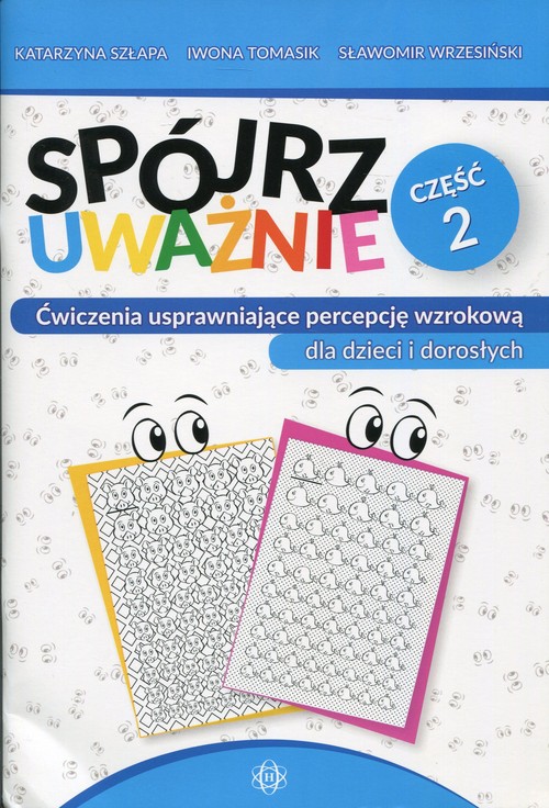 pójrz uważnie to kompleksowy materiał pomocny w usprawnianiu percepcji wzrokowej, nauki liter i czytania oraz stymulujący lewą półkulę mózgową i zależne od niej funkcje intelektualne i mowę. Publikacja skierowana jest do terapeutów pedagogicznych, logopedów, psychologów, nauczycieli przedszkolnych i nauczania zintegrowanego. Seria Spójrz uważnie składa się z 3 części, pierwsza zawiera 50 propozycji zadań polegających na linearnym wyszukiwaniu na karcie podkreślonych na początku liter, sylab lub wyrazów. Na końcu książki znajdują się odpowiedzi do zadań. Proponowane ćwiczenia są uniwersalne, można je wykorzystać podczas zajęć indywidualnych oraz w pracy grupowej w przedszkolu, szkole lub gabinetach terapeutycznych.