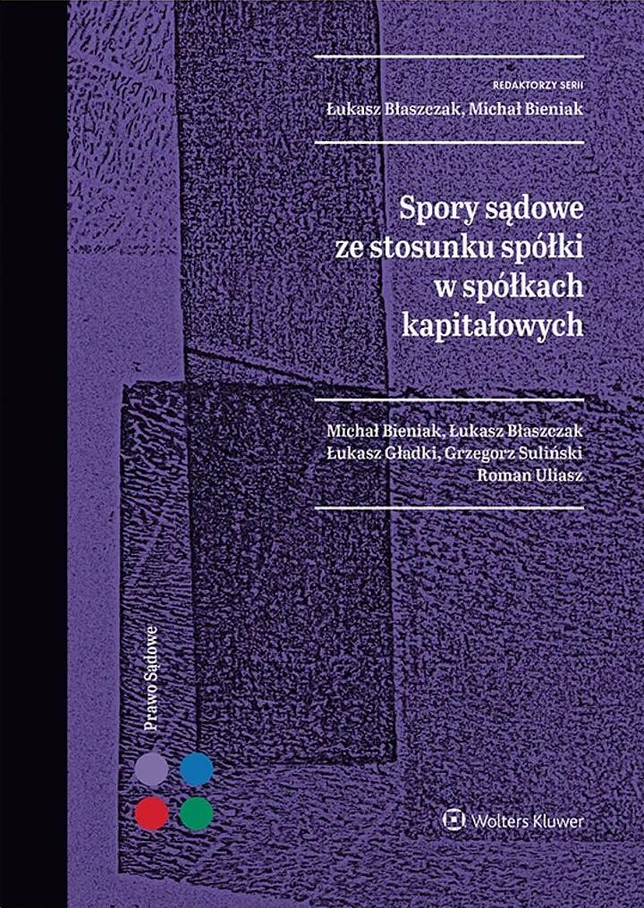 Publikacja kompleksowo omawia tematykę sporów sądowych wynikających ze stosunku spółki w spółkach kapitałowych. Autorzy skupili się na zagadnieniach metodologicznych związanych ze sporami ze stosunku spółki, na problematyce nadużycia prawa procesowego i powództw oczywiście bezzasadnych w sporach korporacyjnych, a także kwestii sankcji związanej z prowadzeniem postępowań w sposób sprzeczny z ich celem. Omówili zagadnienia z perspektywy praktyki sądowego stosowania prawa, a na tle rozważań teoretycznych opartych na analizie bogatego dorobku doktryny i judykatury prawa procesowego cywilnego, prawa cywilnego oraz prawa spółek handlowych przedstawili wyjaśnienie wielu problemów budzących wątpliwości w praktyce. W książce przedstawiono różne postępowania sądowe związane z zaskarżaniem uchwał organów spółek kapitałowych, a także inne postępowania, takie jak: unieważnienie akcji, naprawienie szkody wyrządzonej spółce, stwierdzenie nieważności objęcia udziałów, postępowanie o wpis w księdze udziałów, postępowania związane z nadużyciem uprawnień osobistych i przywilejów udziałowych, wyłączenia wspólnika spółki z ograniczoną odpowiedzialnością, wyłączenia akcjonariusza prostej spółki akcyjnej, ustąpienie akcjonariusza, rozwiązanie spółki z ograniczoną odpowiedzialnością, rozwiązanie prostej spółki akcyjnej. Zaprezentowano również dochodzenie roszczeń przeciwko członkom zarządu spółki z ograniczoną odpowiedzialnością oraz prostej spółki akcyjnej na podstawie art. 299 i 300[132] k.s.h. Publikacja jest przeznaczona przede wszystkim dla praktyków – adwokatów, radców prawnych, sędziów, a także przedsiębiorców, wspólników (akcjonariuszy) oraz członków organów spółek. Autorzy łączą pracę naukową z praktyką – są radcami prawnymi lub adwokatami na co dzień zajmującymi się obsługą podmiotów gospodarczych oraz prowadzącymi postępowania sądowe w zakresie sporów korporacyjnych.