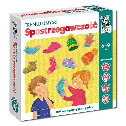Spostrzegawczość to pakiet wciągających zadań opracowany specjalnie dla uczniów pierwszych klas szkoły podstawowej. Połączenie twórczej zabawy z treningiem pamięci, uwagi i spostrzegawczości daje najlepsze efekty we wczesnej edukacji dzieci. W środku aż 100 zabaw, które zadbają o rozwój kompetencji takich jak koncentracja, myślenie logiczne i motoryka mała. Podczas zabawy dziecko rozwinie percepcję wzrokową i słuchową, nauczy się analizować informacje, odkrywać zależności, porównywać i wyciągać wnioski. Z łatwością wykona proste obliczenia matematyczne, rozróżni figury geometryczne, pozna zapisy w formie schematów i rozwinie umiejętność czytania, pisania i liczenia. Atutem zestawu Spostrzegawczość są również zmywalne karty i dołączony do nich suchościeralny flamaster, dzięki którym zadania można rozwiązywać w nieskończoność, poprawiać błędy, ćwiczyć i bawić się wspólnie z rodzeństwem czy rówieśnikami. Dobra zabawa nigdy się nie kończy! W dołączonej książeczce znalazły się wskazówki dla rodziców oraz dodatkowe zadania, które wspomagają efektywną naukę. Monika Sobkowiak - nauczycielka edukacji przedszkolnej, logopeda, autorka artykułów, książek i zabaw dla dzieci, prowadzi blog Pani Monia, któremu zaufało ponad 40 tys. nauczycieli i rodziców. W zestawie: książka ze wskazówkami dla rodziców i zadaniami dla dzieci, 30 dwustronnych kart z zadaniami oraz flamaster suchościeralny.