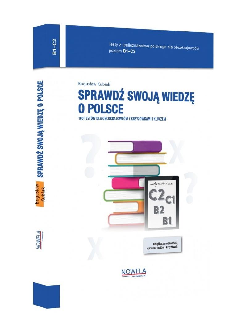 Publikacja z możliwością drukowania testów i krzyżówek – kod QR na stronie redakcyjnej). Zbiór zadań dla uczących się języka polskiego, którzy osiągnęli poziom zaawansowania co najmniej B1, określany wspólnie z B2 jako independent user (niezależny użytkownik), zebranych w pięciu rozdziałach: Kultura, Geografia, Język, Historia i Ludzie. Każdy ze 100 testów zawiera 10 pytań o polskie realia, opartych na technice wielokrotnego wyboru z jedną poprawną odpowiedzią. Po teście następuje krzyżówka, której celem jest utrwalenie i rozszerzenie wiedzy i słownictwa. Proponowany materiał został rzetelnie sprawdzony w praktyce dydaktycznej w Centrum Językowym Politechniki Opolskiej, gdzie corocznie jest organizowany Konkurs Wiedzy o Polsce dla cudzoziemców studiujących różne kierunki w języku polskim. Był on wykorzystywany na lektoratach języka polskiego i w toku przygotowania do konkursu. W obecnej formie państwowych egzaminów z języka polskiego jako obcego wiedza o Polsce nie jest testowana jako oddzielny komponent, ale w pracach nad systemem certyfikacyjnym zostały opracowane katalogi tematyczne i funkcjonalno-pojęciowe z tego zakresu dla poziomów zaawansowanych. Kompetencja socjokulturowa jest uwzględniana w podręcznikach nowej generacji do nauki języka polskiego jako obcego i brana pod uwagę przy ocenianiu sprawności produktywnych (pisanie i mówienie), dlatego powstanie kanonu wiedzy o Polsce dla potrzeb certyfikacji stanowi pomoc dla nauczycieli i osób przygotowujących się do egzaminów. Bogusław Kubiak – autor kilkudziesięciu publikacji na temat metodyki nauczania języków obcych, doktor nauk humanistycznych w zakresie językoznawstwa ze specjalnością glottodydaktyka, polonista, anglista i germanista. Ukończył liczne kursy językowo-metodyczne, m.in. w Wielkiej Brytanii, Irlandii, Niemczech, Austrii, Francji, Danii i Chinach. Pracuje jako adiunkt dydaktyczny w Centrum Językowym Politechniki Opolskiej, gdzie prowadzi zajęcia z języka polskiego jako obcego dla studentów z krajów Europy Wschodniej, Indii oraz biorących udział w programie Erasmus, a także lektoraty języka angielskiego i niemieckiego. Uczył również języka polskiego na Politechnice Pekińskiej i w szkołach polonijnych w Republice Czeskiej.
