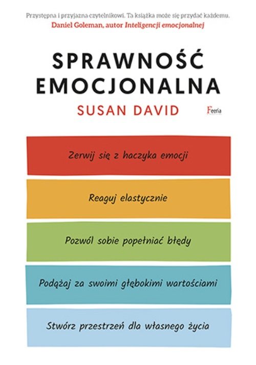 „W Sprawności emocjonalnej Susan David uczy czytelników, jak rozumieć niewerbalny język emocji i jak się nim posługiwać, by lepiej wyrazić to, jak się czujemy z tym, co robimy. Niezbędna lektura” (Susan Cain, autorka Ciszej, proszę) Sprawność emocjonalna pozwala nam być w chwili bieżącej, potwierdzając lub modyfikując nasze zachowania, tak byśmy prowadzili życie zgodne z naszymi intencjami i wartościami. Nie ma tu mowy o ignorowaniu trudnych emocji i myśli. Chodzi o to, by mniej kurczowo trzymać się tych emocji i myśli, ze śmiałością i zrozumieniem patrzeć im w oczy, a potem przekraczać je, tak by w życiu mogły zaistnieć większe rzeczy. Sprawność emocjonalna oznacza świadomość i akceptowanie wszystkich swoich emocji oraz wyciąganie nauki nawet z tych najtrudniejszych. Oznacza też wykraczanie poza wyuczone czy zaprogramowane reakcje poznawcze i emocjonalne, tak by być tu i teraz i, mając jasny odczyt bieżących okoliczności, stosownie do nich reagować, a potem działać długofalowo zgodnie ze swymi najgłębszymi wartościami. Sprawność emocjonalna nie polega na cenzurowaniu swojej głowy czy przymuszaniu się do bardziej pozytywnego myślenia. Badania ukazują też bowiem, że próby zmiany sposobu myślenia z negatywnego („Zawalę tę prezentację”) na pozytywny („Zobaczycie, jak wszystkim szczęki poopadają”) zwykle nie odnoszą powodzenia, a mogą być nawet przeciwskuteczne. W sprawności emocjonalnej chodzi o odprężenie się, uspokojenie oraz działanie bardziej celowe – decydowanie o tym, jak reagować na sygnały z emocjonalnego systemu ostrzegawczego. (fragmenty książki) No.1 Wall Street Journal bestseller USA Today bestseller Amazon.com Best Book of the Year