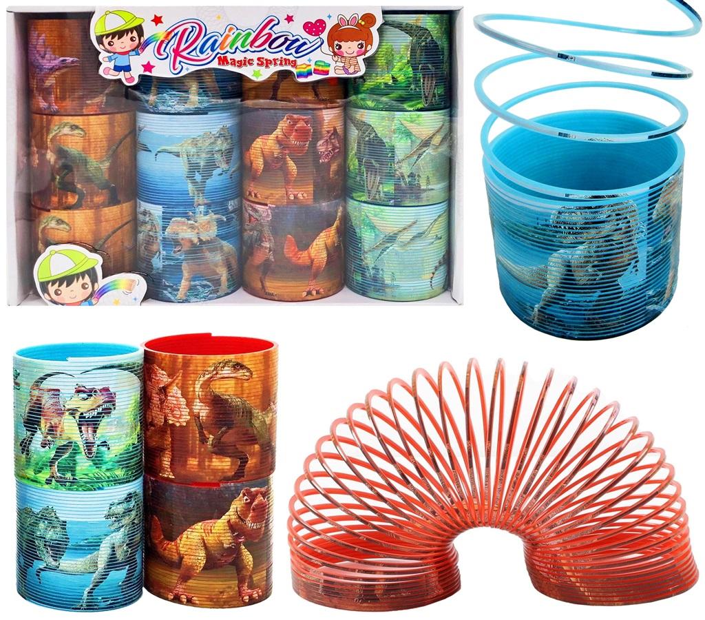 Sprężyna ćwiczy koordynację wzrokowo-ruchową zapewniając przy tym mnóstwo zabawy. W tej wersji na zewnętrzenej stronie znajdują się wizerunki dinozazurów.