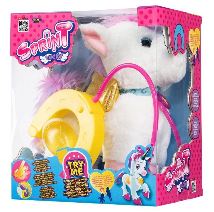 Sprint Jednorożec Lucky SPR002 to wspaniały towarzysz zabaw i prawdziwy przyjaciel dzieci. Zabierz go na spacer - Złap smycz, a pójdzie za tobą wszędzie. Jednorożec ma super stabilne nogi zakończone specjalnymi kulkami, które utrzymują go w pozycji pionowej, nawet gdy podążają za młodszymi dziećmi. Smycz ma wbudowaną pompkę powietrza, która nadmuchuje uszy i ogon. Smycz ma również chip dźwiękowy aktywowany ruchem.