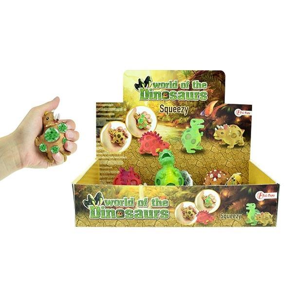 Toi-Toys wyciskany dinozaur to świetny gadżet i zabawka. Sympatyczny gad po naciśnięciu wydziela z siebie kolorową substancję pokrytą błoną. Na pewno spowoduje uśmiech na Waszych twarzach i będzie przedmiotem wielu zabawnych żartów. Wyciskana substancja nie brudzi, jest bezwonna, a dinozaur przyjemny w dotyku i na tyle mały, że komfortowo zmieści się w Twojej kieszeni. Zabawka występuje w trzech wariantach przedstawiających rożne gatunki wysyłane do Was losowo. Produkt sprzedawany w estetycznych displayach mieszczących 12 sztuk.
