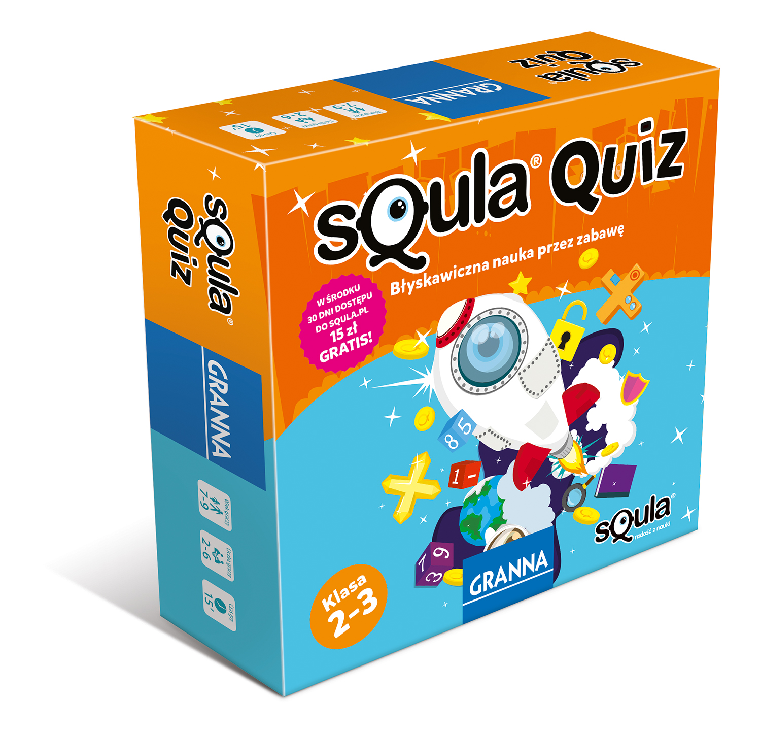 Sprawdź swoją wiedzę i refleks! Czy zdołasz jako pierwszy udzielić poprawnej odpowiedzi? Gra zawiera ponad 100 ciekawych i podchwytliwych pytań związanych z różnymi przedmiotami szkolnymi. Odkryj kartę i zastanów się nad poprawną odpowiedzią. Znasz ją? Bądź szybki i nie daj się wyprzedzić! Gracz, który uzbiera najwięcej punktów, wygrywa. Gotowy do gry? Start! wiek 7-9 lat liczba graczy: 2-6