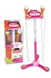 2 mikrofony sceniczne z regulowaną wysokością z serii Bontempi iGirl. Zabawka posiada 10 piosenek demo, efekty dźwiękowe tłumu i aplauzu oraz 6 rytmów perkusyjnych. Możliwość uruchomienia efektów świetlnych. W zestawie znajduje się kabel do połączenia ze źródłem dźwięku - smartfonem, iPodem lub innym. Do poprawnego funkcjonowania wymaga 3 baterii R6/AA 1,5V, które nie są dołączone.