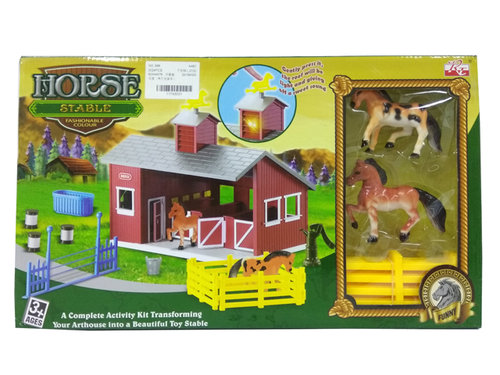 Zestaw zawiera budynek stajni, dwie figurki koni oraz akcesoria. Dla dzieci w wieku od 3 lat.
