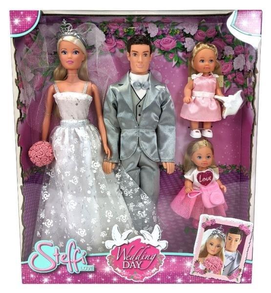 Zestaw zawiera cztery lalki: Kevina i Steffi oraz dwie dziewczynki. Parze towarzyszą 2 małe dziewczynki, jedna z koszyczkiem na kwiaty, a druga z aparatem. Zestaw dzięki stonowanej kolorystyce prezentuje się elegancko i stylowo Steffi jest ubrana w piękną białą suknię, w ręku trzyma bukiet róż. Kevin ubrany jest w srebrny elegancki garnitur.