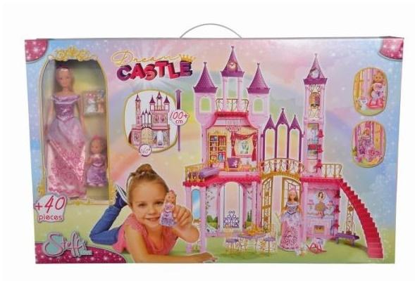 Zdobione pnącymi się różami złote okiennice, duża złota brama i bogato zdobiona złota balustrada zapierająca dech w piersiach, dodają pałacowi szyku i stylu. Cztery strzeliste wieże stanowią zwieńczenie bryły i nadają charakteru budowli. Do jednej z nich prowadzą różowe schody, po których Steffi i Evi mogą wbiec, bawiąc się w berka. A kiedy zmęczone zabawą zapragną chwili relaksu, mogą spędzić miło czas na prześlicznej fioletowej huśtawce lub wypocząć z pieskami wylegując się przed kominkiem.