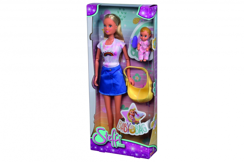 Steffi ze swoim słodkim dzidziusiem może wybrać się wszędzie. Chusta doskonale sprawdzi się jako nisidełko do trzymania przy sobie dziecka, dzięki niej dzidziuś w uroczym, różowym stroju może być zawsze blisko swojej mamusi. Dołączona butelka ułatwi codzienną opiekę nad bobaskiem, ponadto pielęgnację umili fakt, że butelka jest ozdobiona brokatem.