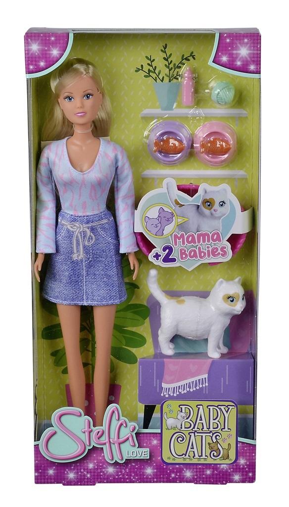 Steffi w sukience z kotem w ciąży i dwoma uroczymi kociętami, w zestawie akcesoria. Wysokość lalki: 29cm, 3l+