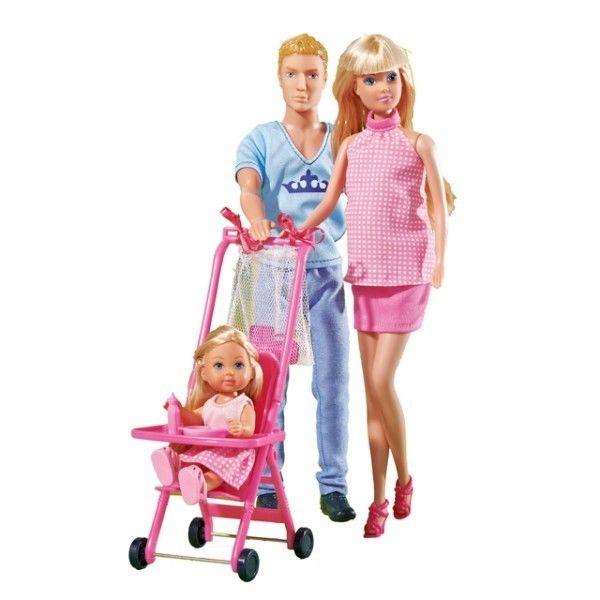 Steffi w ciąży, w zestawie z Kevinem i Evi w wózku i akcesoriami.