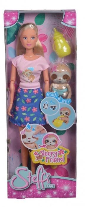 Lalka ubrana w top z nadrukiem uroczego leniwca i buty traperki.