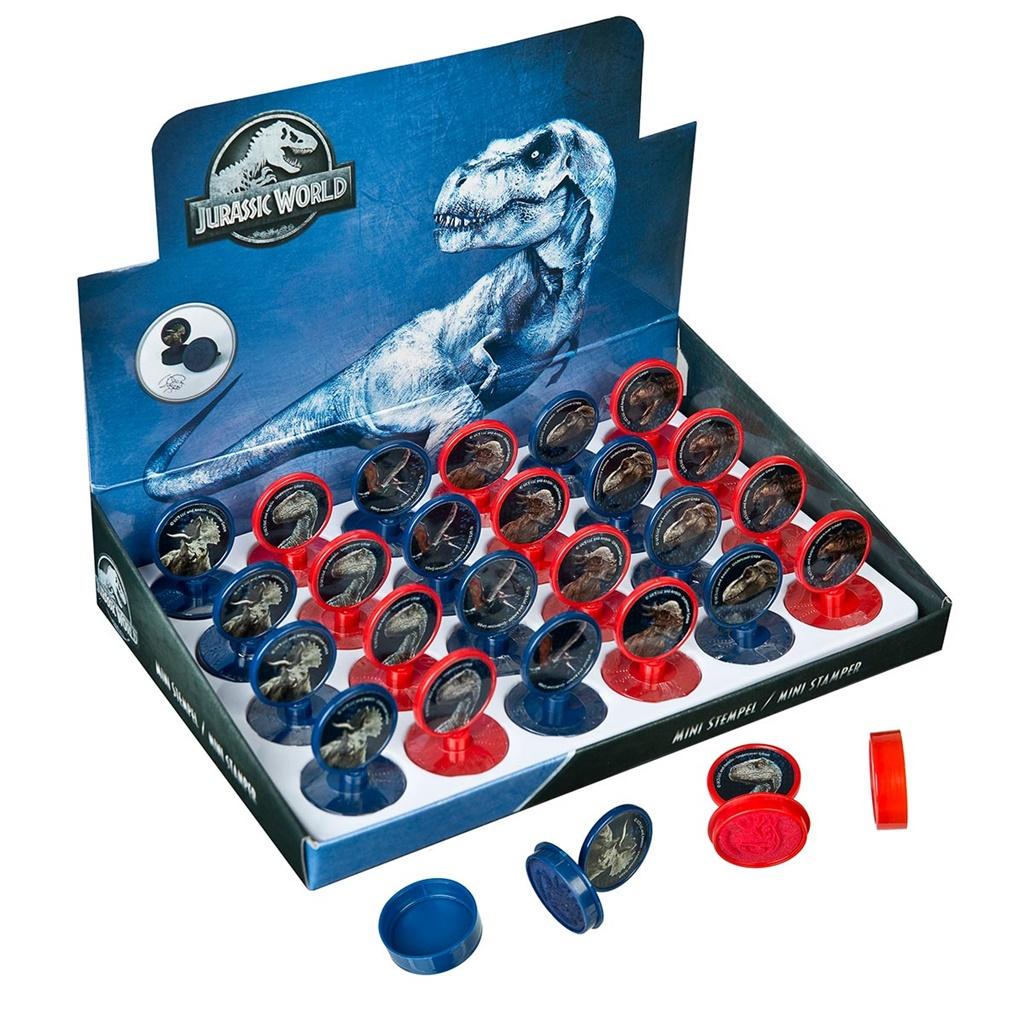 • Na każdym stempelku umieszczona nakładka z motywem przedstawiającym Jurassic World.
