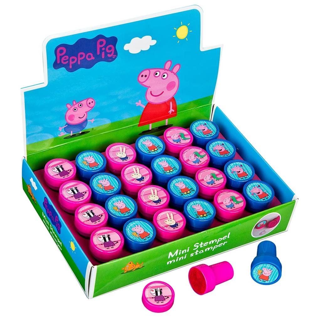 • Na każdym stempelku umieszczona nakładka z motywem przedstawiającym ulubionego bohatera ze Świnki Peppy.