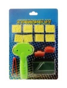 Kolorowy zestaw stempelków wraz z gąbeczką, pęsetą i rollerem. Stempelki z motywem bajkowym. Zestaw pozwoli stworzyć dzieciom unikalne prace. Podane wymiary stanowią wymiar opakowania. Produkt zapakowany w kartonową podstawkę z przezroczystym kloszem.
