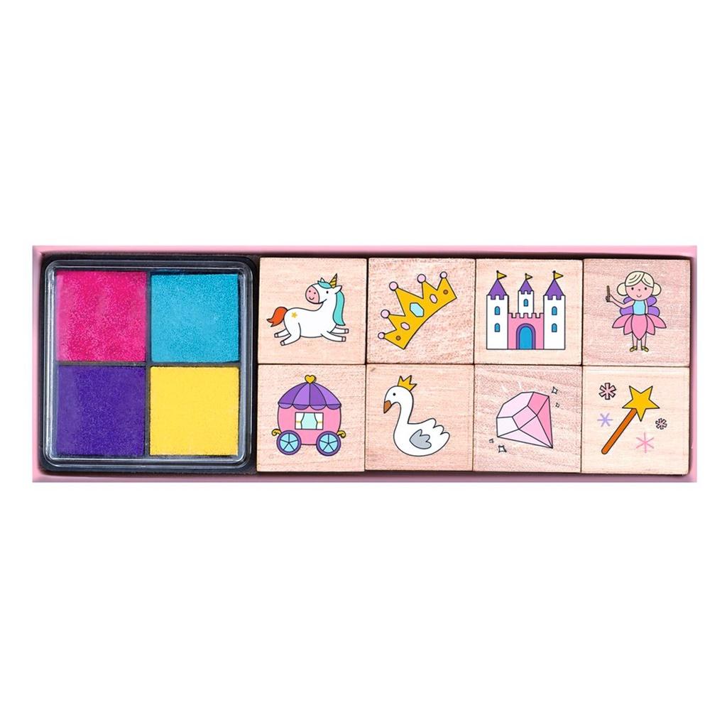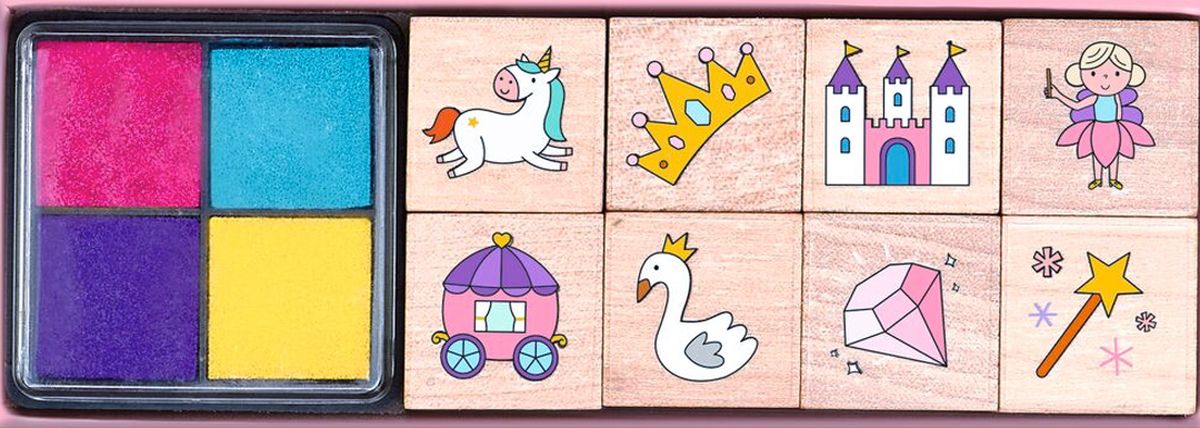 Drewniane stempelki przedstawiające Magiczny Świat Wróżek to niezwykłe gadżety, które sprawią ogromną radość każdemu maluchowi, w wyjątkowy sposób rozwijają ich kreatywność. W zestawie znajdziemy 8 stempelków: jednorożca, karocę, koronę, złotą kaczkę, zamek, magiczny kryształ, wróżkę i magiczną różdżkę oraz 4 tusze: czerwony, niebieski, żółty i fioletowy. Drewniane stempelki z różnymi motywami są idealne do tworzenia listów, kartek, obrazków i ozdabiania prezentów. Wyobraźnia dziecięca nie zna granic.