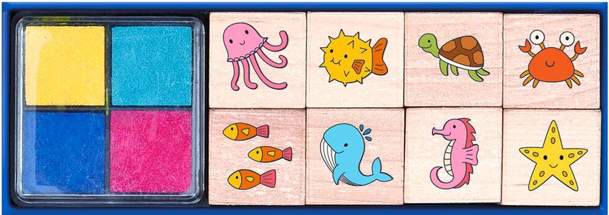 Drewniane stempelki przedstawiające Zwierzęta Morskie to niezwykłe gadżety, które sprawią ogromną radość każdemu maluchowi, w wyjątkowy sposób rozwijają ich kreatywność. W zestawie znajdziemy 8 wizerunków zwierząt: ośmiornicę, rybki, wieloryba, żółwia, konika morskiego, kraba, rozgwiazdę, rybę kolczastą oraz 4 tusze: czerwony, niebieski, fioletowy i żółty. Drewniane stempelki z różnymi motywami są idealne do tworzenia listów, kartek, obrazków i ozdabiania prezentów. Wyobraźnia dziecięca nie zna granic.