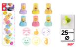 Stempelki dla dzieci z plastikowym uchwytem, który idealnie dopasowuje się do małych rączek. Pieczątki dostępne w różnych kolorach i wzorach. Świetnie sprawdzą się jako drobny upominek. Rozwijają kreatywność i wyobraźnię. Blister zawiera 6 różnych pieczątek w podobnej tematyce. Średnica pieczątki: 25mm.