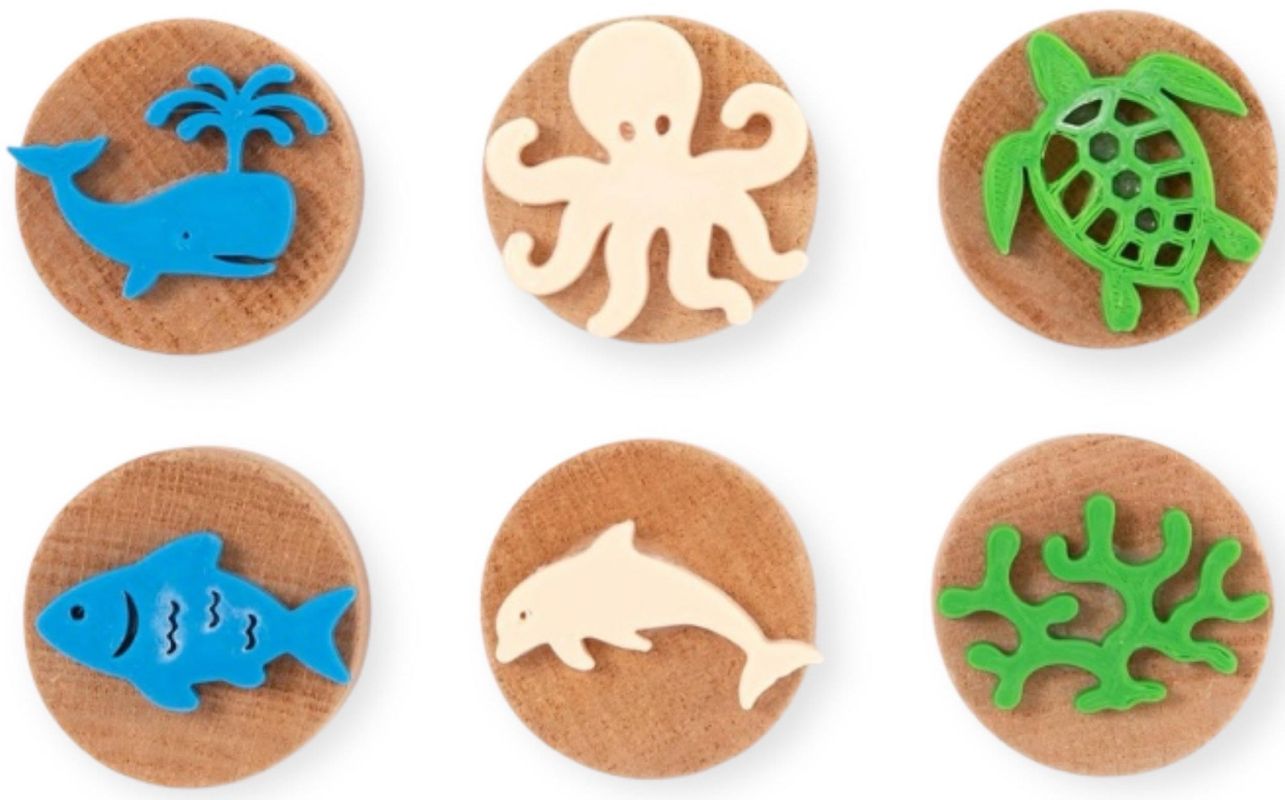 Zestaw Stempelki Morskie Zwierzęta- Magiczna Zabawa dla Małych Odkrywców! Pozwól swojemu dziecku zanurzyć się w zaczarowany świat podwodnych przygód dzięki wyjątkowemu zestawowi drewnianych stempelków od Childgen! Te ręcznie wykonane stempelki, łączące naturalne drewno z nowoczesną technologią druku 3D, gwarantują godziny twórczej zabawy, a jednocześnie wspierają rozwój motoryki małej. Zestaw jest idealny dla dzieci od 15. miesiąca życia, aby wspomagać rozwój siły rączek, koordynacji i precyzji ruchów - świetne przygotowanie do bardziej zaawansowanych aktywności artystycznych. Każdy stempel ma średnicę 5 cm i wysokość 2,5 cm, idealnie dopasowane do małych rączek. W zestawie znajdziesz 6 różnych, morskich wzorów - żółwia, delfina, koralowiec, ośmiornicę, wieloryba i rybę - które wzbogacą zabawę z ciastoliną, modeliną czy piaskiem kinetycznym! W zestawie znajdziesz: 6 stempli z drewna bukowego Dlaczego warto wybrać zestaw stempelków Morskie Zwierzęta? Unikalne wzory - 6 magicznych, oceanicznych motywów, które zachwycą młodych odkrywców. Rozwój przez zabawę - wspierają rozwój motoryki małej i koordynacji ręka-oko. Bezpieczne materiały - wykonane z naturalnego drewna, bezpieczne i trwałe. Pomysły na zabawę z zestawem stempelków Morskie Zwierzęta: Odbijanie i odkrywanie kształtów - Dziecko może eksperymentować z różnymi wzorami, jakie tworzą stempelki na ciastolinie, piasku kinetycznym czy modelinie, co pobudza wyobraźnię i rozwija zdolności poznawcze. Tworzenie podwodnych krajobrazów - Zachęć dziecko do stworzenia całej morskiej scenerii, używając stempelków na piasku kinetycznym, mokrym piasku lub glinie. Opowieści o morskich Zwierzętach- Niech dziecko wymyśla historie o morskich stworzeniach, które odbije stempelkiem. Jakie mają imiona? Gdzie mieszkają? Co lubią robić? Zabawa rozbudzi słownictwo i wspomoże rozwój mowy. Zabawa sensoryczna - Dotykanie i badanie różnych tekstur stempelków wspiera rozwój sensoryczny, ucząc dzieci rozpoznawania faktur. Liczenie i porządkowanie - Użyj stempelków do nauki podstaw liczenia: dziecko może odbijać wzory morskich stworzeń, licząc i porównując liczby odcisków. Zabawa stemplami to nie tylko świetna rozrywka, ale także doskonałe wsparcie rozwoju motoryki małej, koordynacji i zręczności. Tworzenie wzorów rozwija wyobraźnię i zdolności plastyczne, a przy okazji uczy precyzji podczas stemplowania ozdób, kartek czy dekoracji. Kilka słów o marce ChildGen Marka ChildGen, założona w 2019 roku przez B. Ongen w rodzinnej kuchni w Stambule, powstała z pasji do wspierania naturalnej kreatywności dzieci. Każdy produkt, od nietoksycznej ciastoliny po pachnący piasek kinetyczny, jest starannie tworzony lokalnie, wyłącznie z naturalnych składników, co gwarantuje ich wyjątkową jakość. Rodzinne korzenie marki przeplatają się z troską o środowisko, czego dowodem są innowacyjne opakowania refill, które zmniejszają zużycie plastiku. ChildGen harmonijnie łączy wartości ekologiczne z rozwijaniem dziecięcej wyobraźni i kreatywności. *** Opakowanie zawiera 6 drewnianych stempli. Wyprodukowane w Europie w Stambule. Prezentowane zdjęcia to zdjęcia obrazowe. Ostrzeżenia: ryzyko zakrztuszenia - małe elementy. Produkt przeznaczony dla dzieci powyżej 3 roku życia. Miłej zabawy!