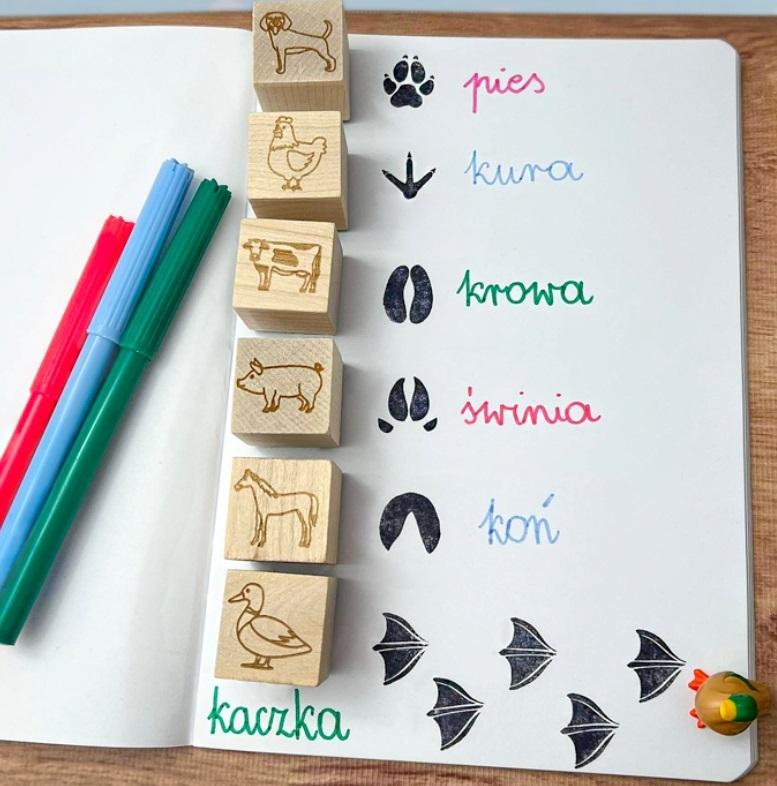 Stemple (pieczątki) ślady na wsi to produkt edukacyjny do nauki przez zabawę.