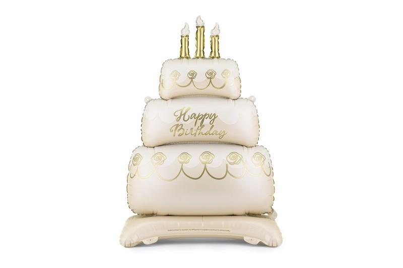 Stojący balon foliowy Tort, w kolorze beżowo-złotym. Wymiary przed napompowaniem ok. 76,5 x 144 cm (30,1 x 56,7''), wymiary po napompowaniu ok. 70 x 100 cm (27,6 x 39,4''). Do napompowania powietrzem. Zestaw zawiera słomkę.