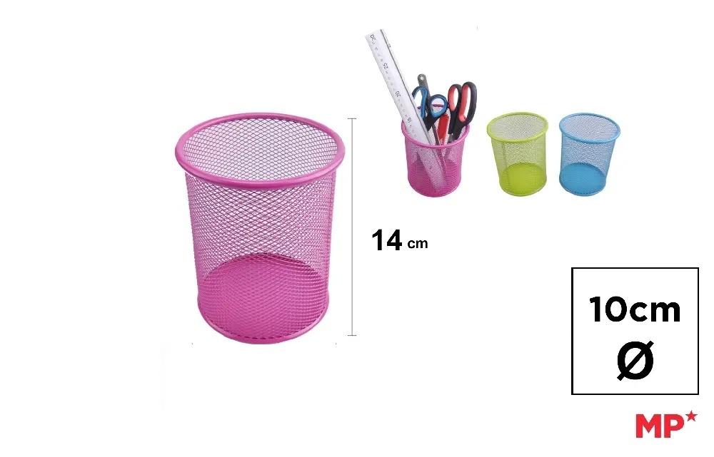 Stojak uchwyt na ołówki wykonany z metalowej siatki.Idealny do organizowania ołówków, długopisów,markerów, korektorów i trzymania ich podręką i w porządku. Okrągły. 100 mm. Wysokość 140mm. Dostępne w trzech różnych kolorach: niebieskim,zielonym i różowym.