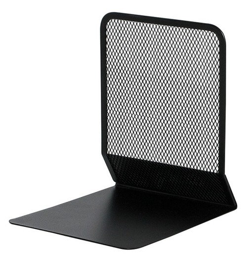 stojak na książki wyprodukowany z metalowej siateczki powlekanej lakierem w kształcie litery „L” z gładkimi krawędziami i zaokrąglonymi narożnikami na podstawie antyposlizgowe podkładki wymiary: 130x155x165mm 2 sztuki w j.s. kolor czarny
